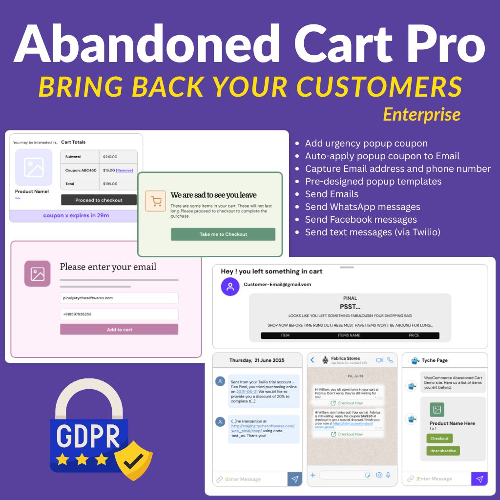Abandoned carts aren’t just a revenue issue—they’re a complex challenge that leaves online store owners wondering why customers leave their carts unfinished and how to bring them back. Abandoned Cart Pro helps you recover lost sales by sending timely reminders and personalized offers through email, text, and messenger, turning abandoned carts into completed purchases.